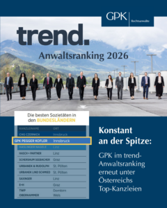 Wir freuen uns sehr über den 2. Platz in der Kategorie „Beste Sozietäten in den Bundesländern“ (außerhalb Wiens) – und damit über die 18. Top-3-Platzierung in Folge.